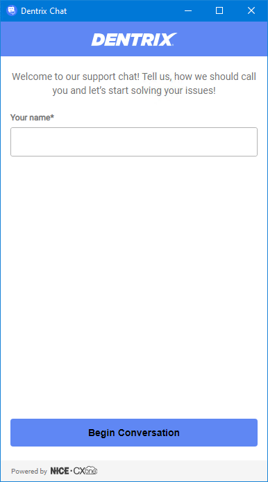 If you are enrolled in Dentrix Connected Care Essentials, and as an alternative to placing a call to Dentrix Customer Support, you can use Dentrix Chat to begin a chat session with a Customer Support Representative. Dentrix Chat is available from inside Dentrix or through the Dentrix website.