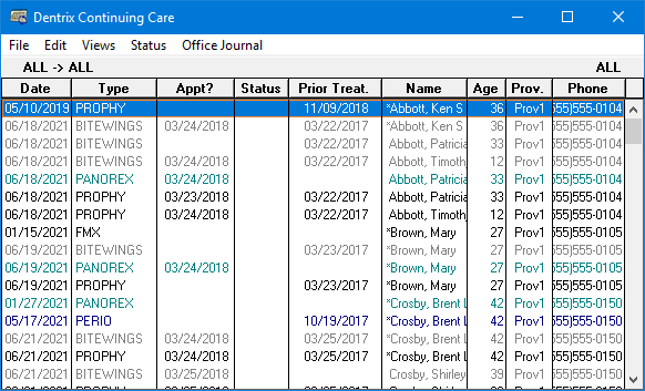 You can print the Continuing Care list on mailing labels to send reminders or other correspondence.