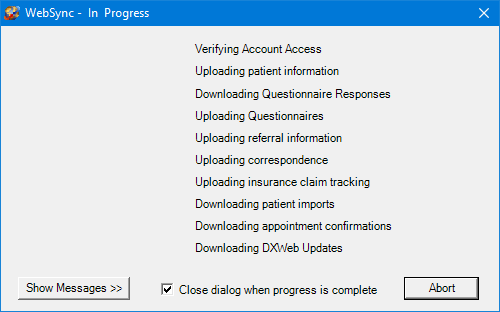 Running the WebSync will perform all the tasks you selected in the WebSync setup. A red arrow appears next to each option as the WebSync runs that option. When the WebSync is complete for that option, a green check mark appears next to the item.