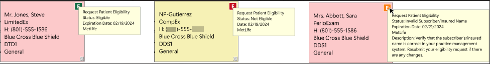 1. In the Appointment Book or the Family File, hover your pointer over the desired eligibility indicator.