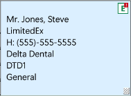 Green E on White Background (with small red corner box) – Patient is eligible, and new eligibility data is ready for review and approval to be saved to the coverage tables. (Once data is saved to the coverage tables, the icon changes to a white E on green background.) This icon appears for a patient whose eligibility has never been checked, or for one whose previous eligibility status has expired and the current eligibility request has returned new data.