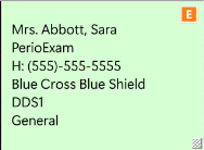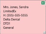 When eligibility responses are returned, an eligibility icon appears automatically in the Appointment Book and the Family File based on status. Eligibility indicator icons are color-coded (and independent of the color coding of the appointment blocks in the Appointment Book designating each provider) as follows: