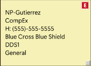 White E on Orange Background – Indicates an error such as, "Patient Not Found," "Payor Unable to Respond," "Payor Nor Supported," or other errors.