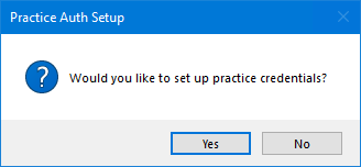 If you haven't set up your practice credentials, the Practice Auth Setup dialog box appears.