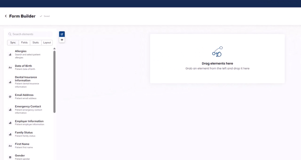 4. On the left side of the Form Builder, click the Static tab.