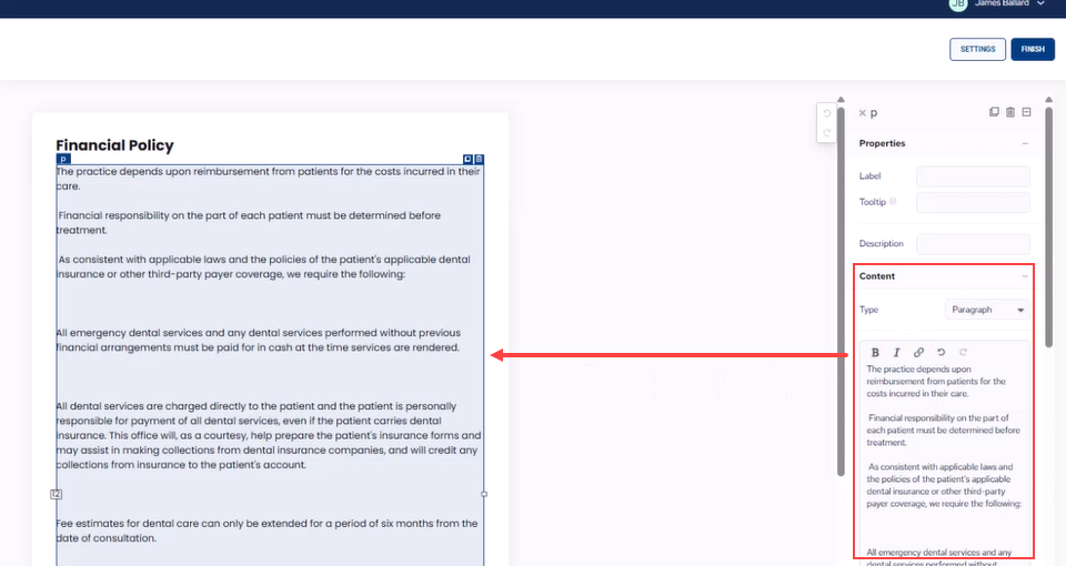 3. Under Properties, type a patient-friendly name to describe the form.