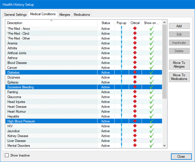 Your dental practice needs to know about a patient's medical health history prior to treatment for several important reasons. The challenge in a health history form is to find the balance between asking too many questions, which can lead to form fatigue and abandonment, and asking too few questions, leaving you without crucial information. To strike the balance that is right for your practice, you can customize the list of medical conditions and allergies that appear in a Health History form.