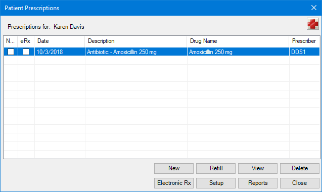Through Dentrix, your ePrescribe license is validated and site, user, and patient data are uploaded. The ePrescription window appears.