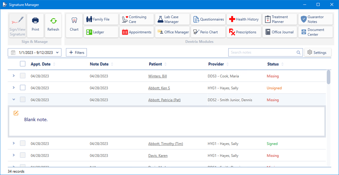 Note: A missing note is classified as either blank (a note without content) or missing (a note hasn't been created).
