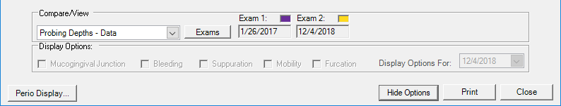 5. From the Compare/View list, select the information that you want to use to compare/view the exams.