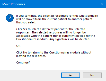 If you accidentally save Questionnaire responses to the wrong patient, you can move the responses to the appropriate patient.