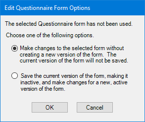 If you have never used the selected form, the Edit Questionnaire Form Options dialog box appears.