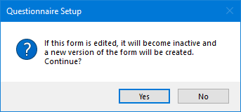 1. In the Questionnaire Setup dialog box, select the form that you want to edit, and then click Edit Form.
