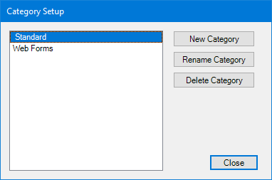 Note: The predefined Standard and Web Forms categories and any categories that you have set up are listed.