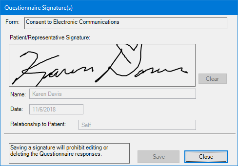 Note: To attach signatures to a form, you must have first set up the questionnaire form to require signatures.