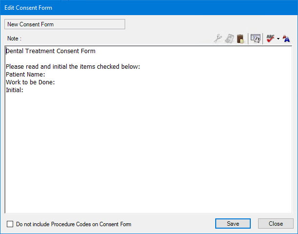 3. If you do not want to include procedure codes on the consent forms, select Do not include Procedure Codes on Consent Form.