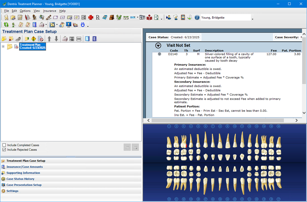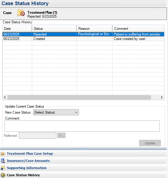 Any rejected treatment plans appear under Treatment Plan Case Setup.