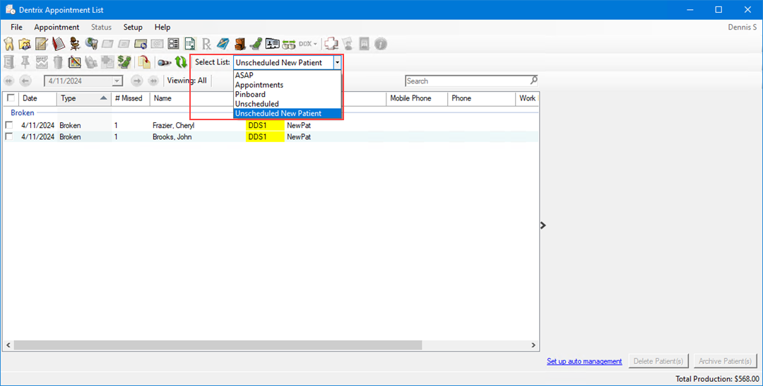 A new option was added to the Appointment List window to help you manage new patient broken appointments.