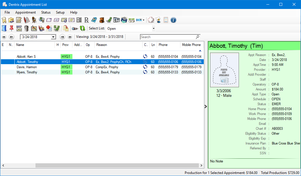In addition to providing you with names of patients who can fill open appointment times, the interactive nature of the Open List makes it simple to contact a patient and then create or move an appointment as needed.