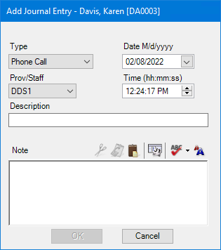 7. Click OK to save the Office Journal entry and return to the Appointment Book.