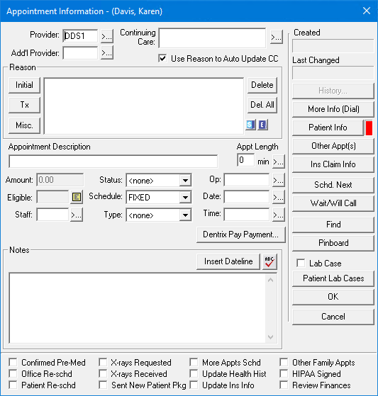 Tip: You can also click the Schedule Appointment button on the Appointment Book toolbar to edit appointment information.