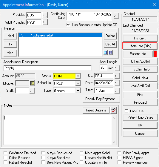The Appointment Information dialog box appears.