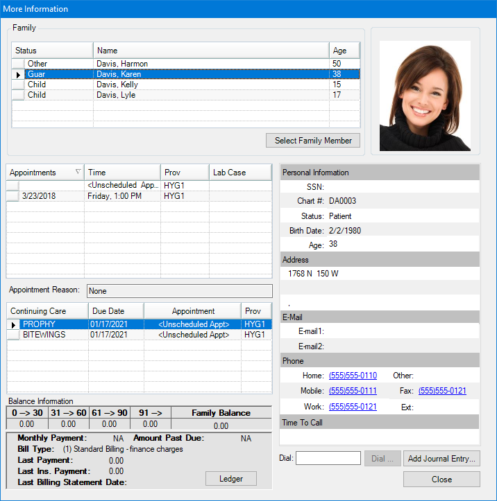 From the Appointment Book, you can dial a phone number automatically or view a patient's phone number.