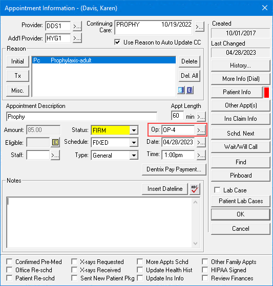 1. Locate an open schedule space, and double-click the appropriate operatory at the desired time.