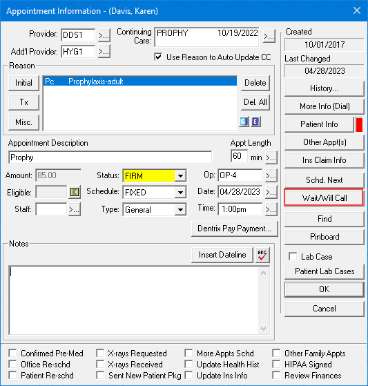 If, after you enter appointment information, the patient cannot decide on an appointment date and time, you can move the appointment to the Unscheduled List. When the patient is ready to be scheduled, you can move the appointment from the list to the appropriate time without having to re-enter the information. If the patient fails to call back and confirm a new appointment, the appointment remains on the Unscheduled List so you can use it to fill last minute cancellations or to increase production during slow periods.