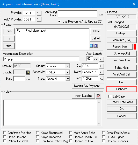 If you know the date and time that you want to reschedule an appointment, you can easily do so using the Pinboard without re-entering any appointment information.