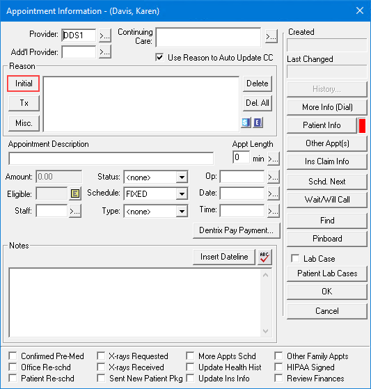 To learn more about changing the options from the Appointment Information dialog box, click: