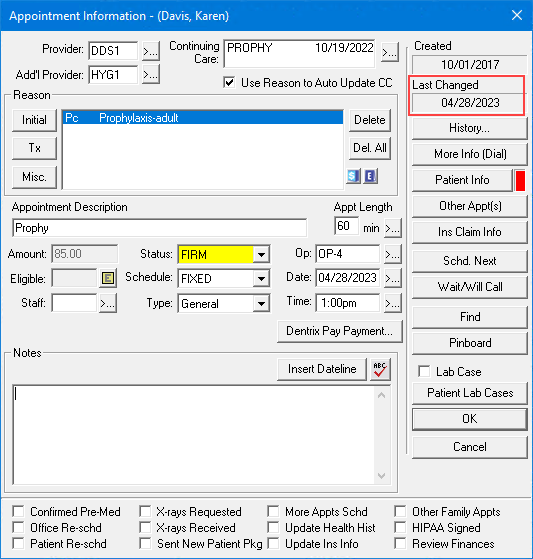 Note: The date of the last time you edited the appointment appears in the Last Changed text box.