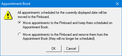1. In the Appointment Book,, click Options, point to Move to Pinboard, and then click All Appts for Displayed Date.
