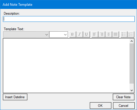 Template Text - Type the text that you want to include in the template. Use the toolbar to format the text and to create bulleted and numbered lists.