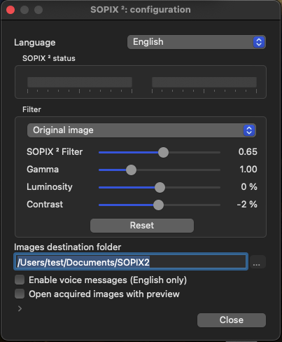 Make sure that the Images destination folder is set to /Users/(username)/Documents/SOPIX2.