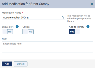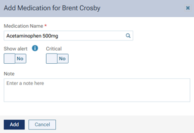 Note: The specified visibility and criticality will be the default settings for the medication in your library.