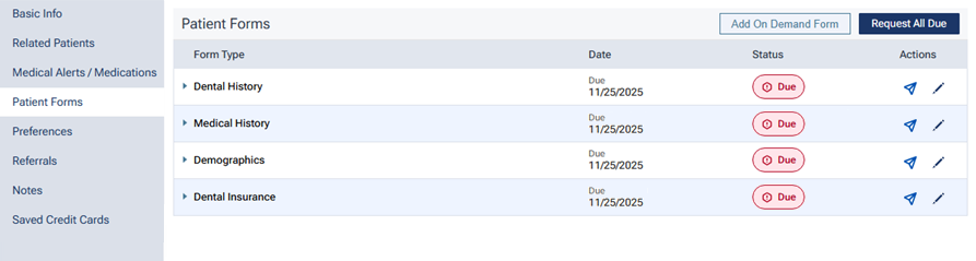 To request forms from the patient, click (or tap) Request All Due.