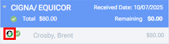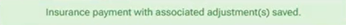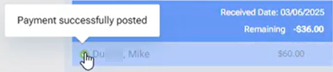 A green success icon appears next to the patient's name. If you position your pointer over the green checkmark icon, "Payment successfully posted" appears.