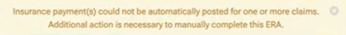 Manual entry is required. The ERA payment and write-off adjustment are not posted.