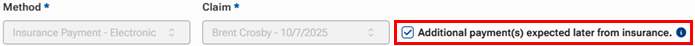 The Additional payment(s) expected later from insurance checkbox is selected automatically for the payment (in the Edit Claim Payment dialog box).