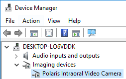 Expand the Imaging Devices category, and make sure that the camera is listed ("Polaris Intraoral Video Camera").