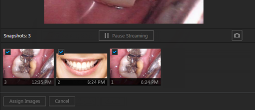 To save the snapshots on the snapshot panel as intraoral images, but not assign tooth numbers, leave those snapshots on the snapshot panel.