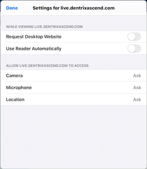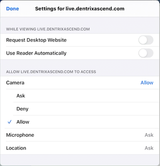 To configure the browser settings for using the iPad camera with Dentrix Ascend Imaging, do the following:
