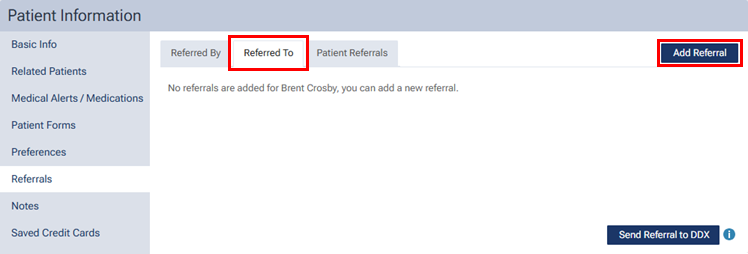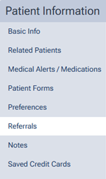On a patient's Patient Information page, select Referrals on the navigation panel (on the left).