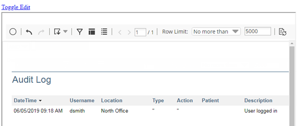 To customize the report, click (or tap) the Toggle Edit link. Using the interactive report builder tools, add data fields to the layout, and set up filters as needed.