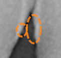 Results of the calculus analysis - Dashed orange circles/ovals appear on the image where possible areas of interproximal calculus were detected.