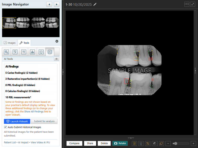 With Dentrix Ascend Detect AI activated, as you acquire an individual image or a series, each image is submitted to Videa Health automatically for analysis as applicable.