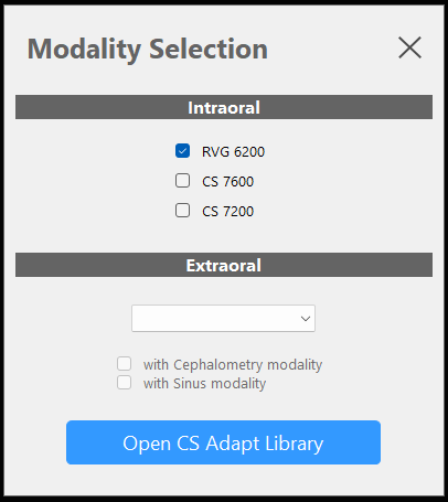 Select the correct RVG 6200 sensor model, and then click Open CS Adapt Library.