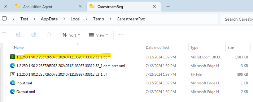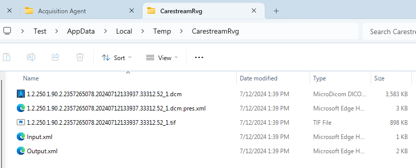 In File Explorer, navigate to %temp%/CarestreamRvg.