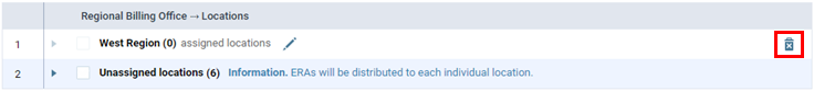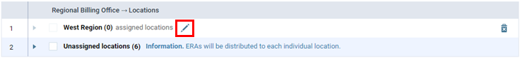 If ERAs are being routed to regional billing offices, for each region with assigned locations, an enrolled location must be selected as the billing office, and at least one other enrolled location must be included.